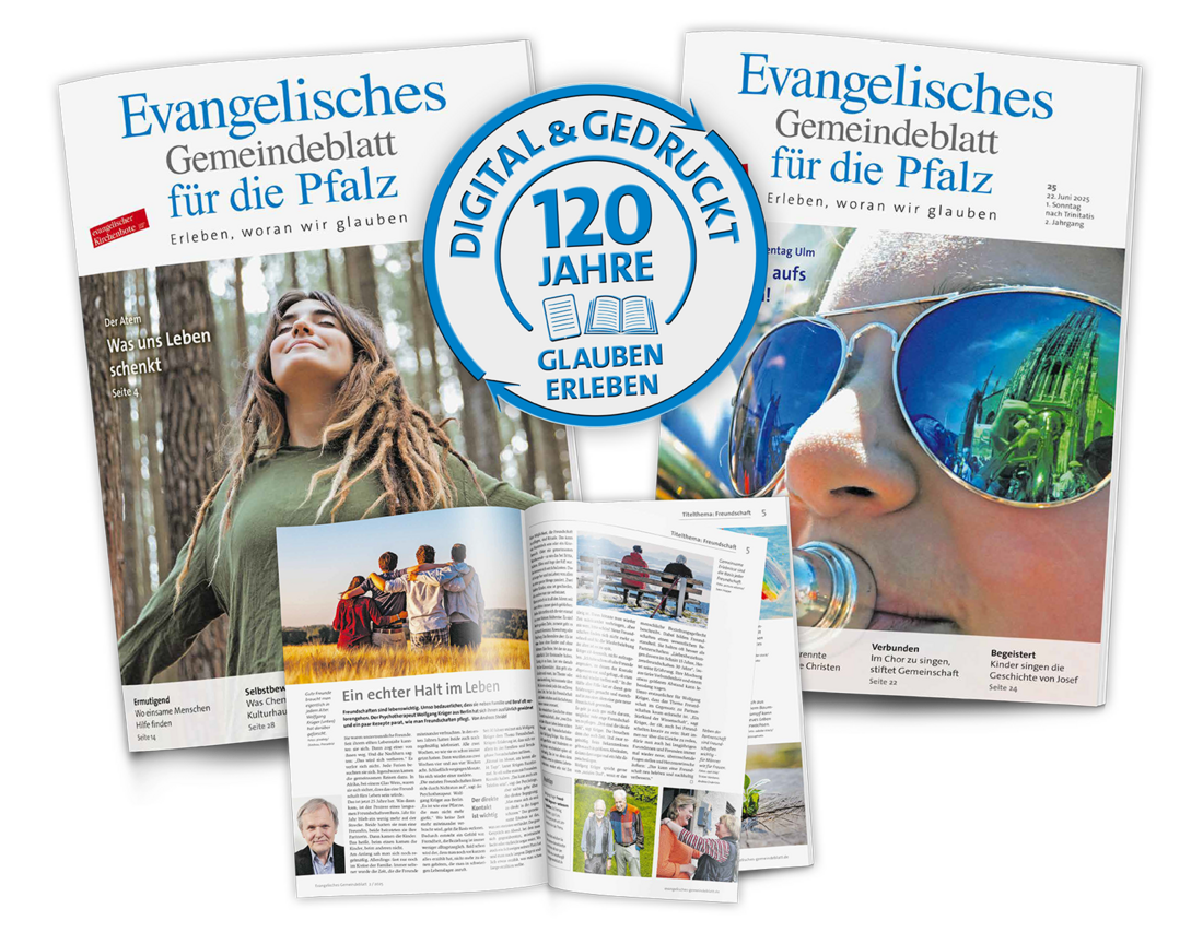 Ebenso empfehlen wir Ihnen das Evangelische Gemeindeblatt für die Pfalz. Die Wochenzeitung bietet Ihnen viele Einblicke in kirchliche Themen der gesamten Region.